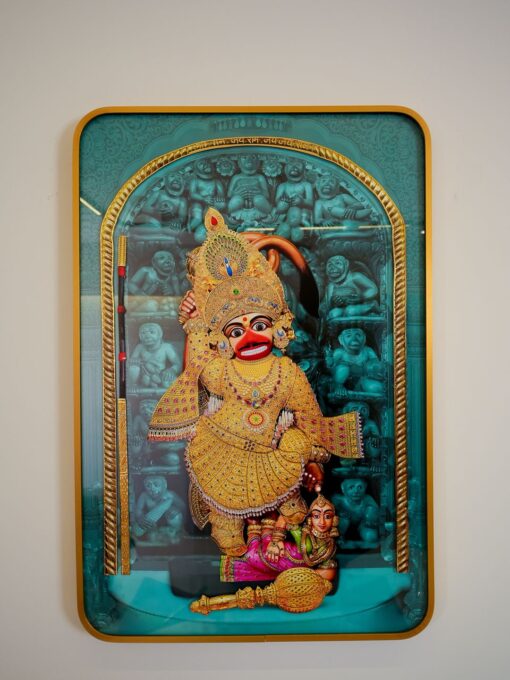 Bring blessings and spiritual energy into your space with this Sarangpur Hanuman Dada Divine Golden Frame. Crafted with detailed 3D embellishments, this masterpiece showcases intricate design and premium-quality materials. Ideal for home décor, temples, and gifting, this frame is a symbol of devotion and faith. Elevate your spiritual surroundings with this beautifully crafted artwork.